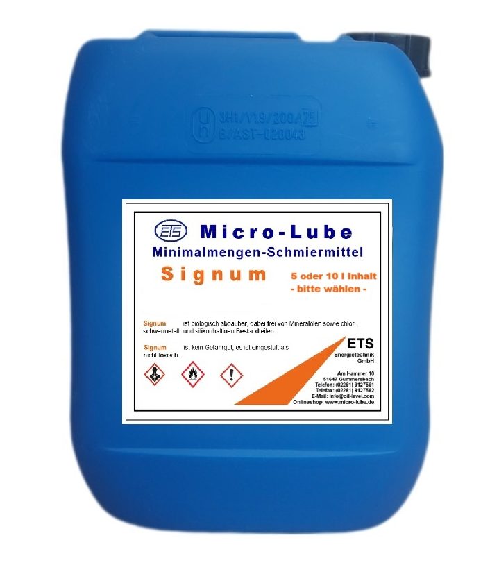 Die Empfehlung der Berufsgenossenschaft zur Minimierung der Nebelbildung durch Schmierstoffe und damit die Luftgrenzwerte am Arbeitsplatz werden durch die Verwendung von ETS-Signum Schmierstoffe weit übertroffen.